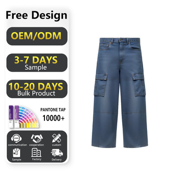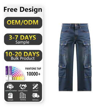 爱奇定制高品质宽松牛仔男士嘻哈风格男朋友牛仔裤水洗绣花编织实心可洗夏季